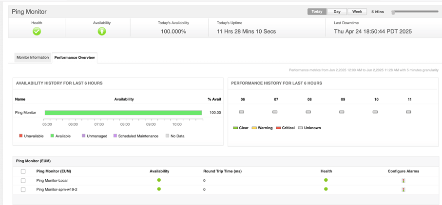ManageEngine Applications Manager ile ping izleme, bir cihazın sadece “Çalışıyor” veya “Çalışmıyor” olduğunu görmekten çok daha fazlasını sunar. Araç, ağ durumunuzu görselleştirmeniz ve bunu APM (Uygulama Performans Yönetimi) stratejilerinize entegre etmeniz için işlevsel bir arayüz sağlar. Kesintilere hızla müdahale etmenize, operasyonların kesintisiz sürmesine ve altyapınızın büyüme süreçlerini planlamanıza yardımcı olur.