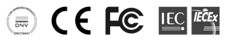 - UL, CE, FCC, DNV, ATEX, C1D2, IECEx