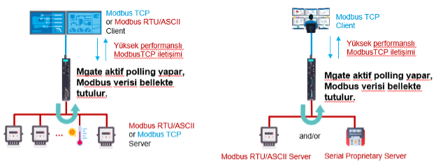 - Modbus cihazlarını aktif olarak sorgulamak ve verileri önbelleğe almak için yüksek performanslı ve düşük gecikmeli Agent Mode’u destekler.