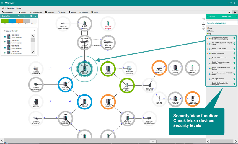 Günümüzde, endüstriyel ethernet altyapısına dahil olan tüm ünitelerin IEC-62443 uyumluluğu kritik öneme sahiptir. Önümüzdeki yıllarda bu uyumluluk, CE sertifikası gibi olacaktır ve üretim ve satış bu sertifkaya veya uyumluluğa bağımlı hale gelecektir. Mgate MB3070-G2 serisi, Moxa’nın MxView NMS yazılımına entegre edilebilmekte, ve Mxview’ün Security View tool’u ile IEC-62443 uyumluluğu kolayca tespit edilebilmektedir.