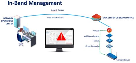 Veri merkezindeki ağ ünitelerine, doğrudan erişim veya Console Server üzerinden erişim, varolan LAN/WAN network altyapısından yapıldığında In-band erişim olarak tanımlanır.