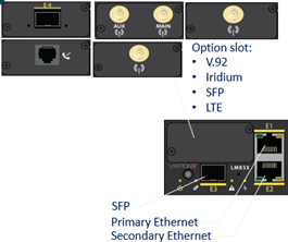 - RJ45 bakır, SFP Fiber, LTE/4G, Uydu/Iridium gibi arabirimler üzerinden bağlantı desteği sağlamalıdır. Genellikle, RJ45 ve SFP Fiber, In-band erişim için, LTE/4G ve Uydu/Iridium ise Out-Of-Band erişim için kullanılır.