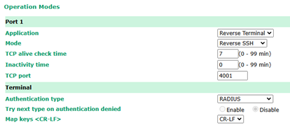 SSH Pass-through veya Reverse SSH yöntemi ile, Console Server, her bir srei port için bir TCP port dinler. SecureCRT gibi terminal uygulamalarını kullanarak erişim mümkündür. Uygulamada tüm Moxa Console Server’lar için de bu mümkündür.