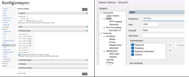 Yöntem 1: LM Console Server üntesine doğrudan SSH bağlantısı yapın. Ardından ilgili port no ve terminal komutları ile cihaza erişin. Bu yöntem Moxa console Server için de mümkündür.