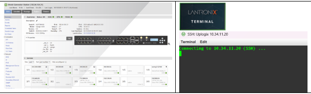 Control Center üzerinde ilgili Console Server’ın istenen Portuna tıklanır. SSH butonuna tıklanır ve “Open native Terminal” seçilirse, Browser ekranında Managed Device’ın SSH oturumu açılır. Bu yöntem sadece Lantronix serisinde geçerlidir.